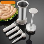 Wystarczy włożyć odpowiednie mięso do cylindra nadziewarki, umieścić osłonkę na rurze, a następnie nacisnąć tłok, aby nadziać kiełbaski.