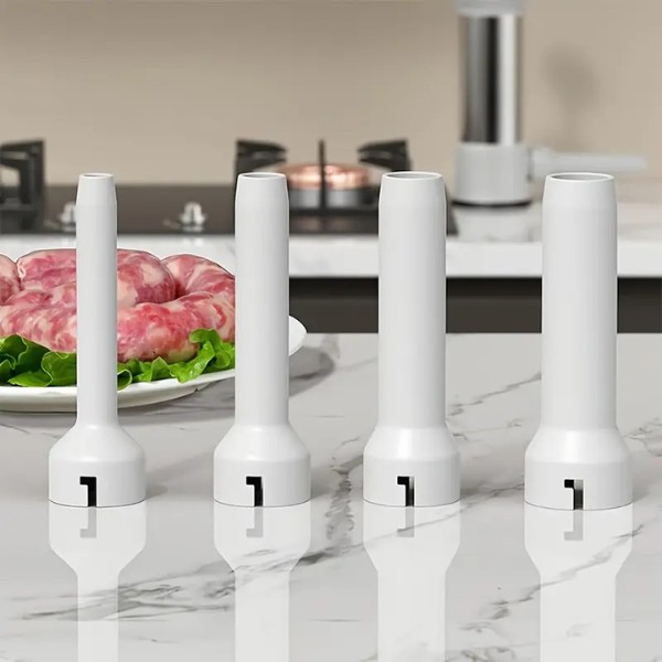 Nadziewarka do kiełbas zawiera cztery dysze PP o różnych średnicach: 1,3cm. 1,8 cm, 2,3 cm i 2,8 cm.