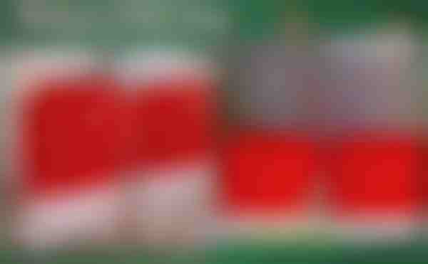Zestaw zawiera: Zestaw 4 sztuk pokrowców na krzesła w czerwonych kapeluszach.