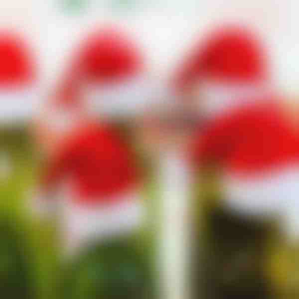 ZestawFORKMAS zawiera 6 miniaturowych czapek świątecznych, z których każda ma wymiary około 6 x 10 cm.